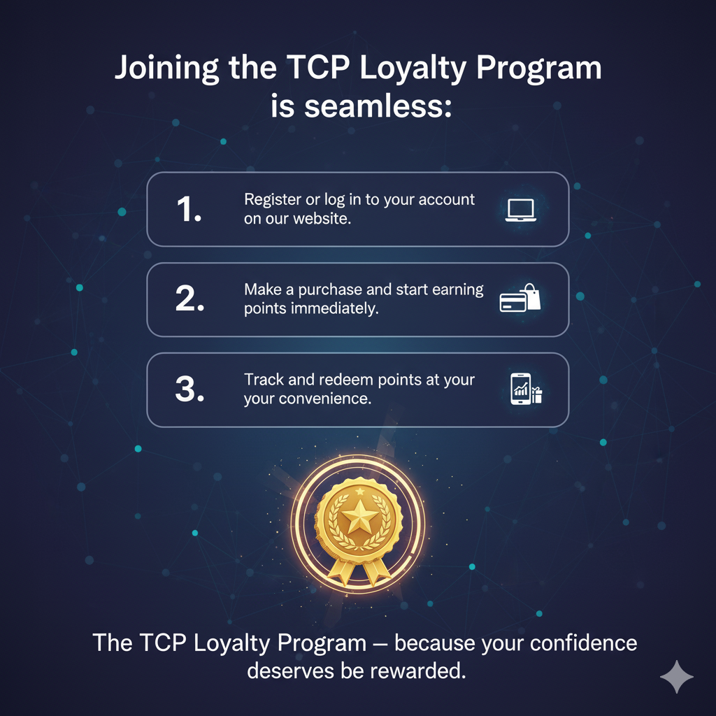 The TCP Loyalty Program is a structured rewards initiative where customers earn loyalty points each time they make qualifying purchases through our website. These points can be accumulated and later redeemed for a wide range of products, services, or exclusive rewards.